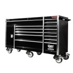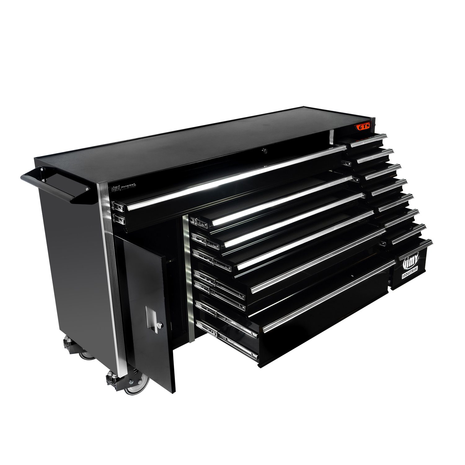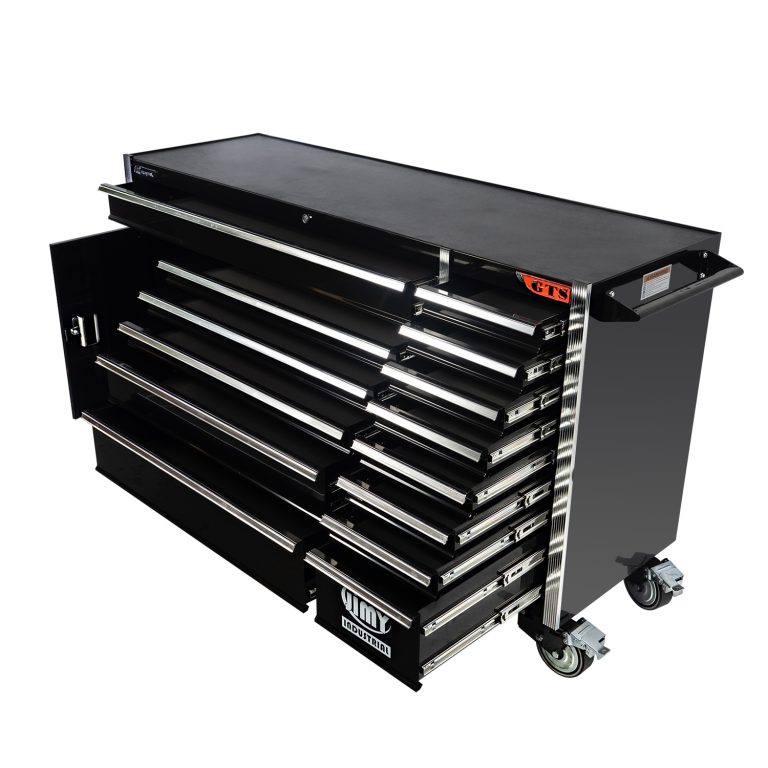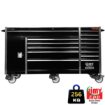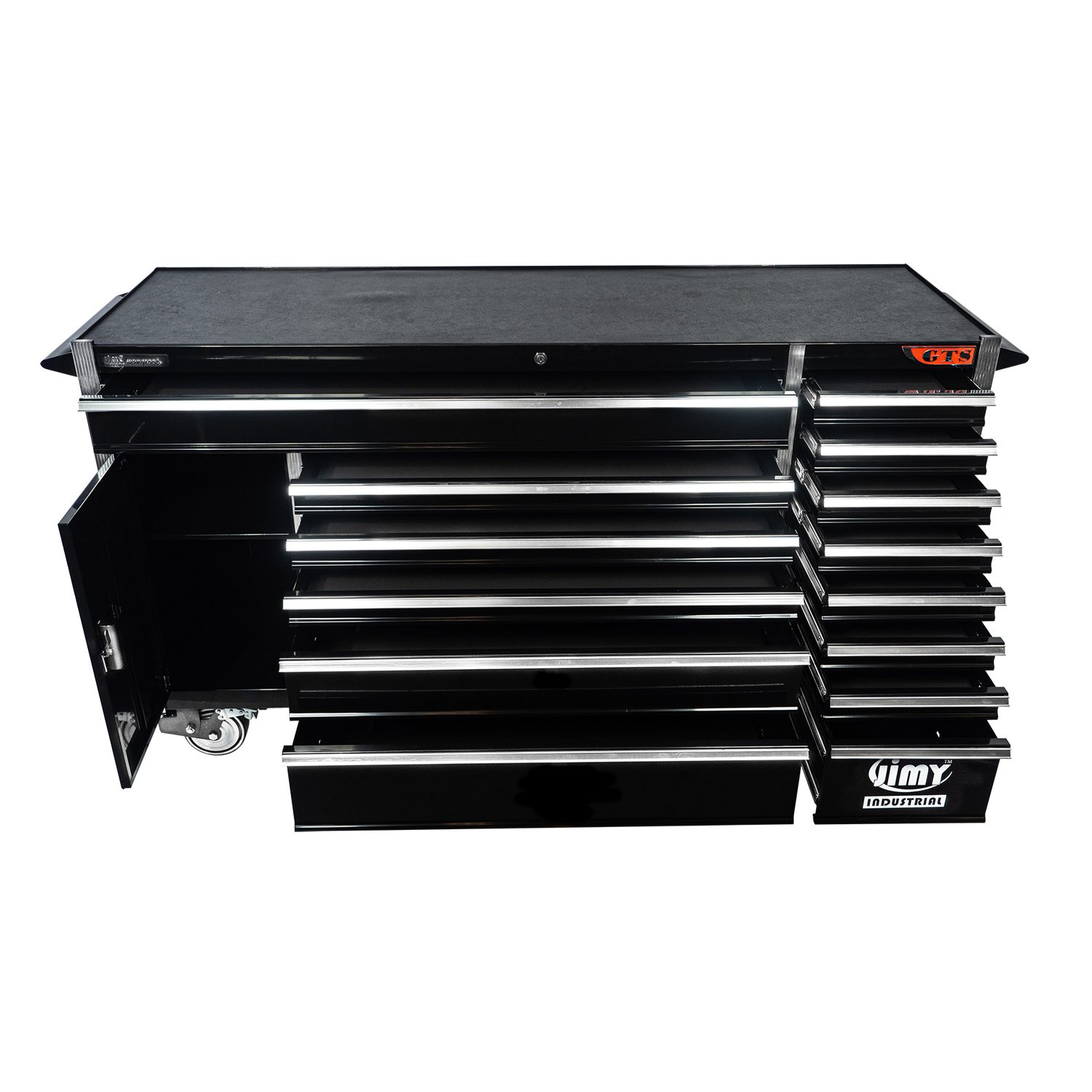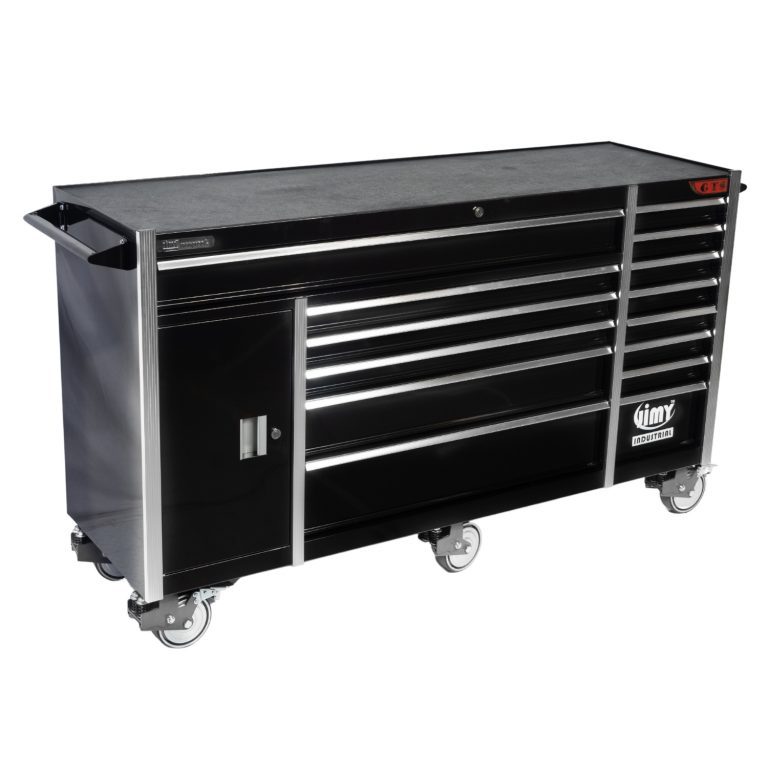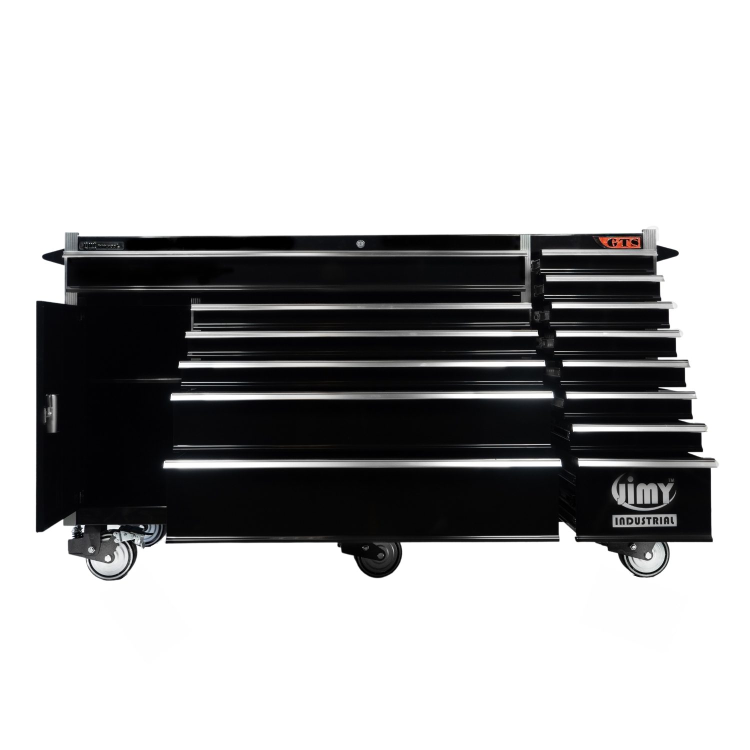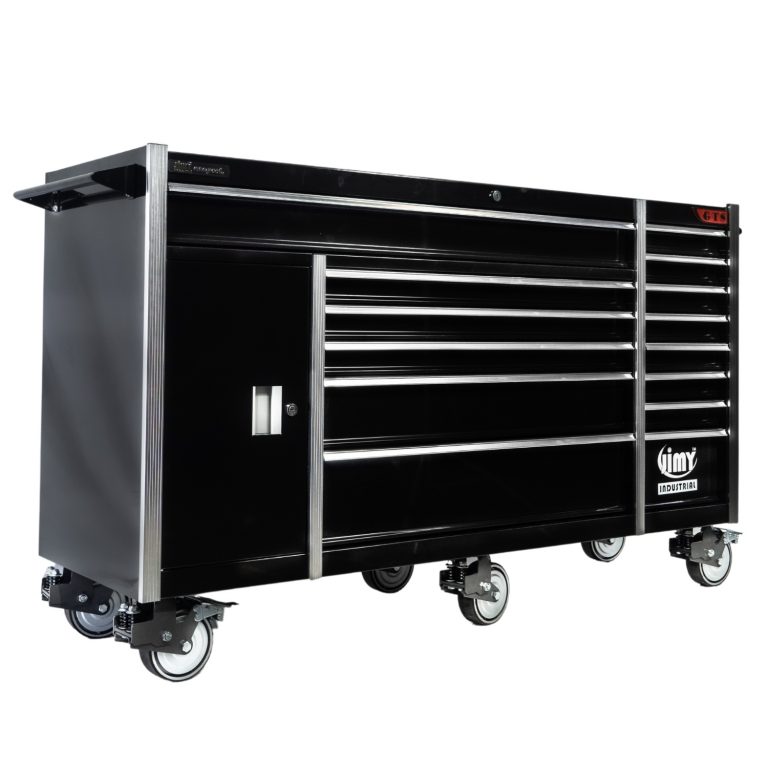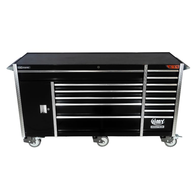 Jimy tool boxes are career spanning and built to last! Jimy tool boxes are fully modular to offer a number of storage combinations to fit your needs. With the extra deep 500mm drawers our 72” roller cabinet expands your storage capabilities and a massive 1680kgs in weight load capacity. It features 14 drawers with full-width drawer handles, pre-cut drawer liners and a single integrated barrel lock. Durable full extension ball bearings and a tough power coated finish make this storage a perfect fit for your home garage or commercial workshop.