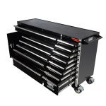 - 14 drawers for easy organisation of hand tools and everything else you need. The bottom left-hand cabinet is an extra large compartment for storage on bulky and heavy items such as larger power tools etc. Drawers are easily removable.