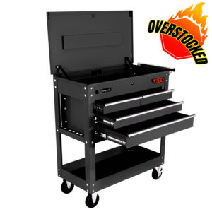 - 5” high and 2” wide caster wheels (2 fixed, 4 locking swivel) provide easy mobility when fully loaded