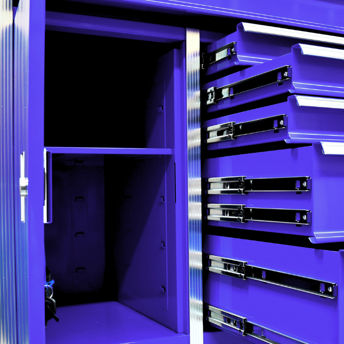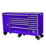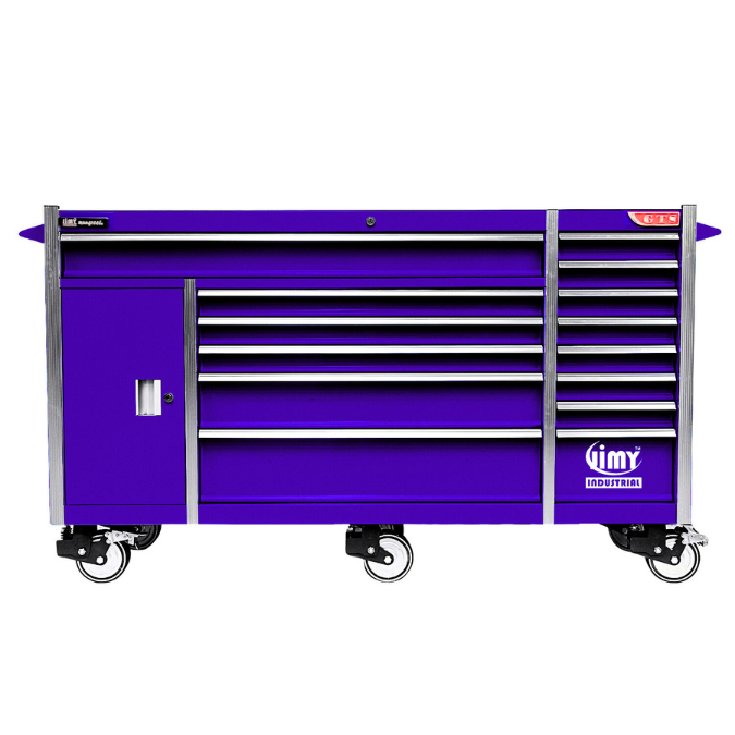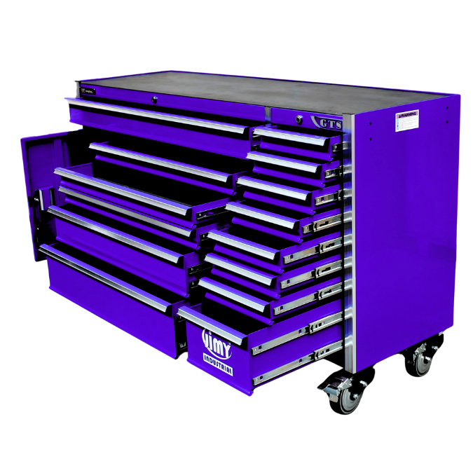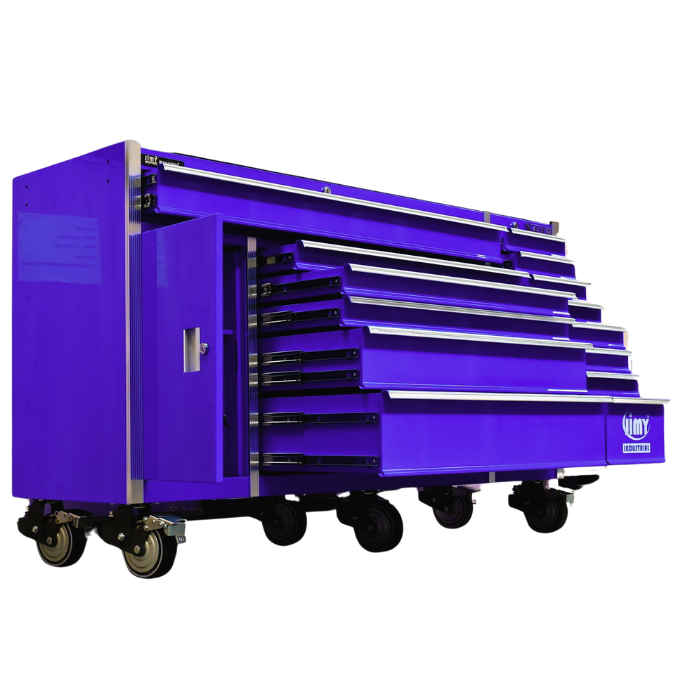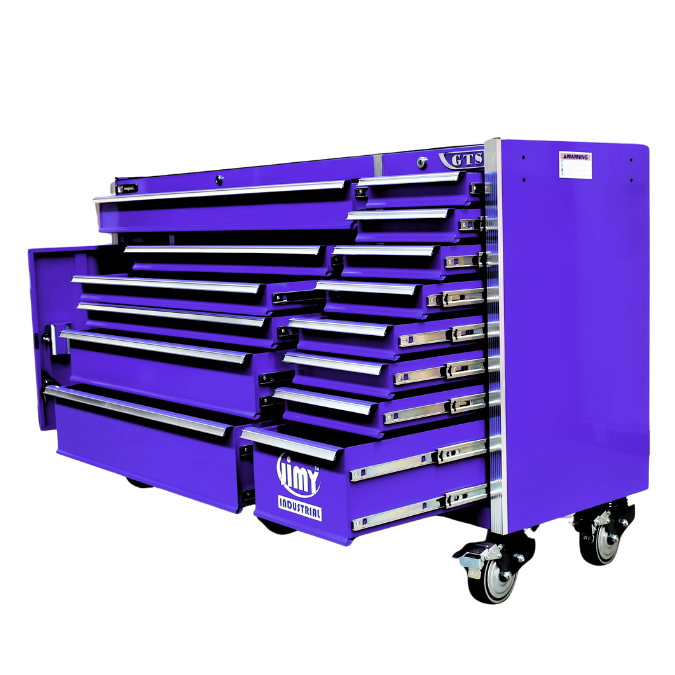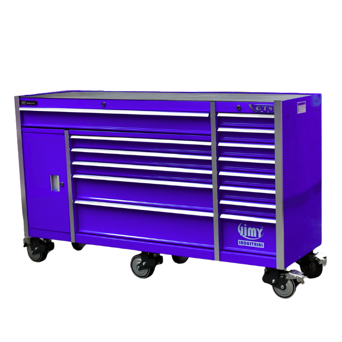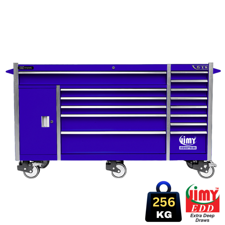 Jimy tool boxes are career spanning and built to last! Jimy tool boxes are fully modular to offer a number of storage combinations to fit your needs. With the extra deep 500mm drawers our 72” roller cabinet expands your storage capabilities and a massive 1680kgs in weight load capacity. It features 14 drawers with full-width drawer handles, pre-cut drawer liners and a single integrated barrel lock. Durable full extension ball bearings and a tough power coated finish make this storage a perfect fit for your home garage or commercial workshop.