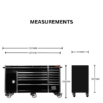 - 14 drawers for easy organisation of hand tools and everything else you need. The bottom left-hand cabinet is an extra large compartment for storage on bulky and heavy items such as larger power tools etc. Drawers are easily removable.