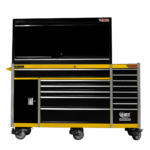 - 14 drawers for easy organisation of hand tools and everything else you need. The bottom left-hand cabinet is an extra large compartment for storage on bulky and heavy items such as larger power tools etc. Drawers are easily removable.
