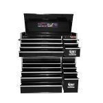 Jimy tool boxes are career spanning and built to last! Jimy tool boxes are fully modular to offer a number of storage combinations to fit your needs. With the extra deep 500mm drawers our 56” workshop expands your storage capabilities and a massive 1930kgs in weight load capacity. It features 18 drawers with full-width drawer handles, pre-cut drawer liners and a single integrated barrel lock. Durable full extension ball bearings and a tough power coated finish make this storage a perfect fit for your home garage or commercial workshop.