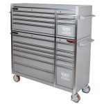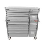 - 18 drawers for easy organisation of hand tools and everything else you need. The bottom right hand drawer is an extra large compartment for storage on bulky and heavy items such as larger power tools etc. Drawers are easily removable.