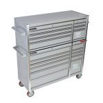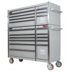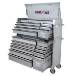 - 18 drawers for easy organisation of hand tools and everything else you need. The bottom right hand drawer is an extra large compartment for storage on bulky and heavy items such as larger power tools etc. Drawers are easily removable.