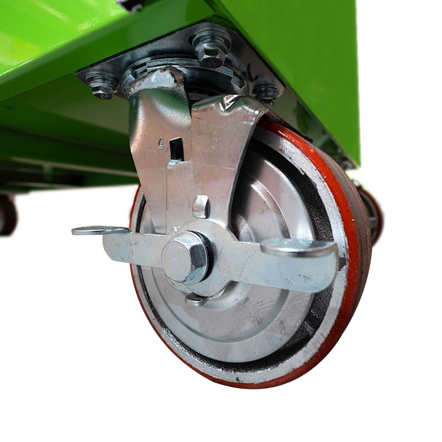 - 5” high casters wheels and 2” wide (2 fixed, 2 locking swivel) provide easy mobility when fully loaded