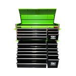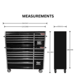 - 18 drawers for easy organisation of hand tools and everything else you need. The bottom right hand drawer is an extra large compartment for storage on bulky and heavy items such as larger power tools etc. Drawers are easily removable.