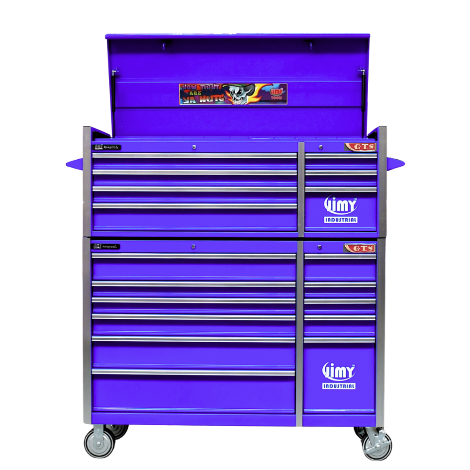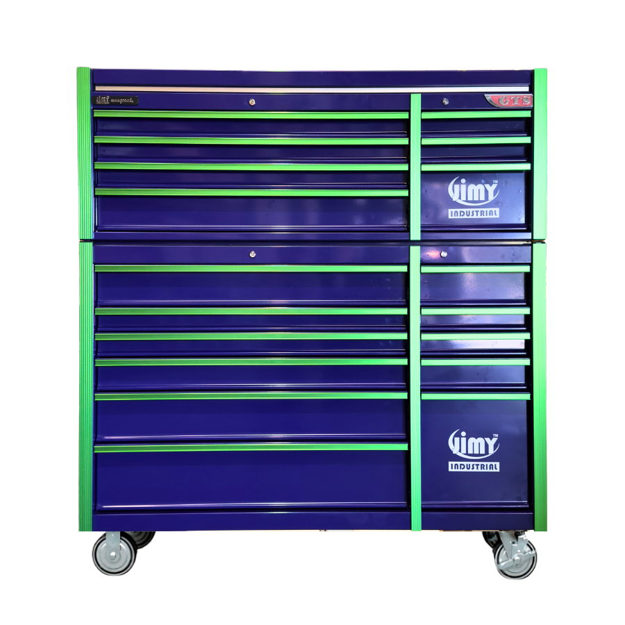 Jimy tool boxes are career spanning and built to last! Jimy tool boxes are fully modular to offer a number of storage combinations to fit your needs. With the extra deep 500mm drawers our 56” workshop expands your storage capabilities and a massive 1930kgs in weight load capacity. It features 18 drawers with full-width drawer handles, pre-cut drawer liners and a single integrated barrel lock. Durable full extension ball bearings and a tough power coated finish make this storage a perfect fit for your home garage or commercial workshop.