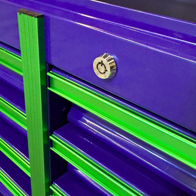 Jimy Tools’ Premium Titan design is here! With a gun-metal grey base, off-white drawers & emerald-green drawer handles & strips. This has to be one of the best looking toolboxes you’ll find in Australia!