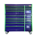 - 18 drawers for easy organisation of hand tools and everything else you need. The bottom right hand drawer is an extra large compartment for storage on bulky and heavy items such as larger power tools etc. Drawers are easily removable.