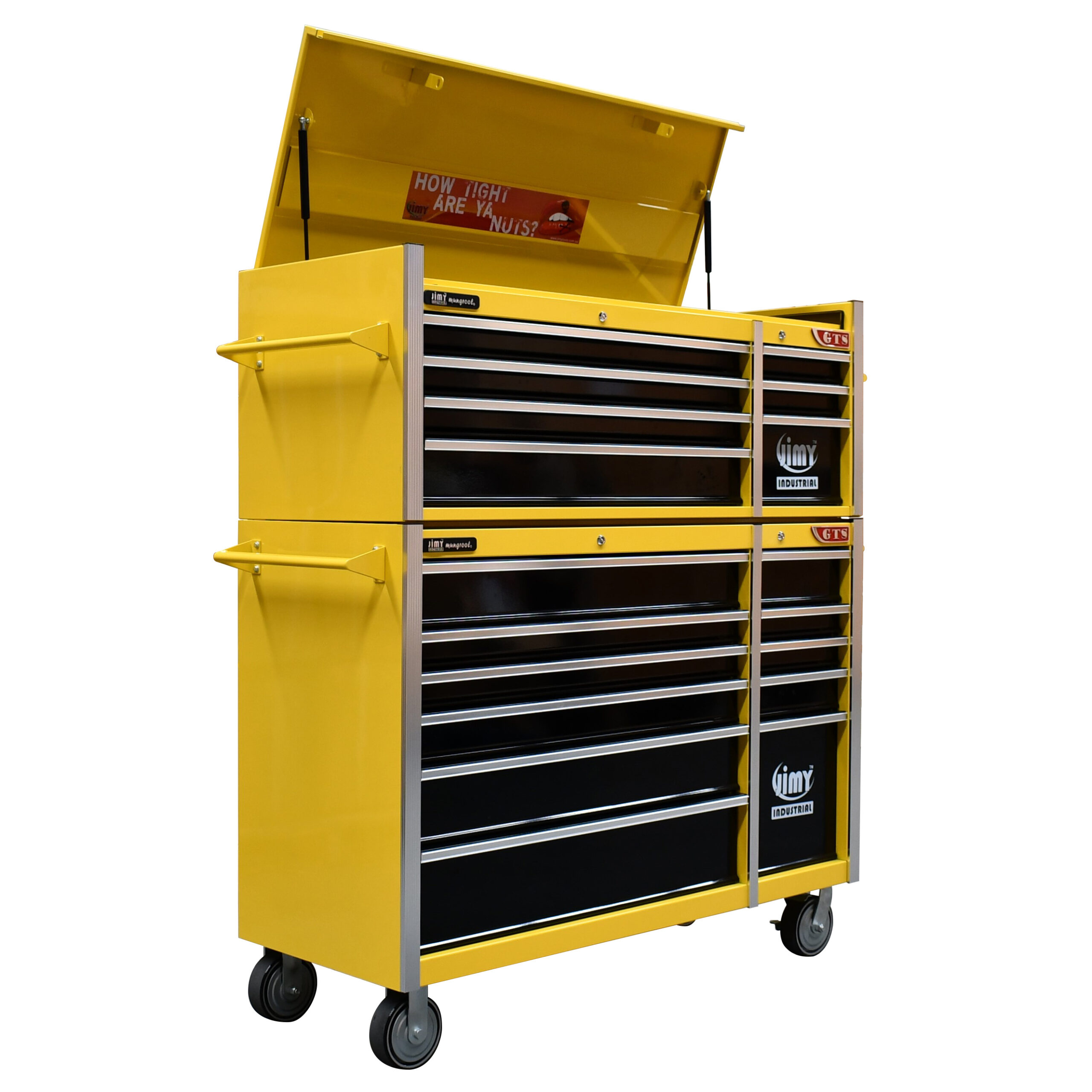 Jimy tool boxes are career spanning and built to last! Jimy tool boxes are fully modular to offer a number of storage combinations to fit your needs. With the extra deep 500mm drawers our 56” workshop expands your storage capabilities and a massive 1930kgs in weight load capacity. It features 18 drawers with full-width drawer handles, pre-cut drawer liners and a single integrated barrel lock. Durable full extension ball bearings and a tough power coated finish make this storage a perfect fit for your home garage or commercial workshop.
