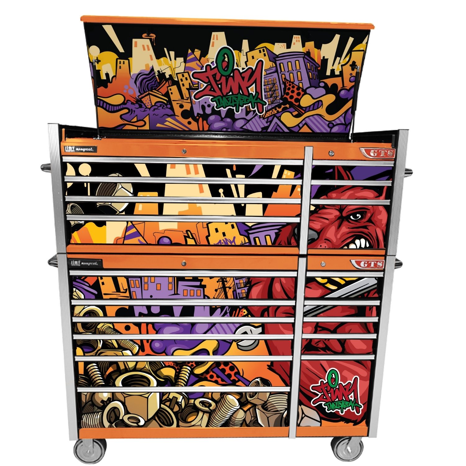 Designed for serious tradespeople and enthusiasts who need reliable, high-capacity storage with a unique street-art aesthetic.