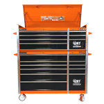 With extra-deep 500mm drawers, this 56” workshop provides exceptional storage space and an impressive 1,930kg load capacity. It includes 18 full-width drawers, pre-cut drawer liners and a secure integrated barrel lock system. Smooth full-extension ball-bearing slides and a tough industrial powder-coated finish ensure long-lasting durability in both home garages and commercial workshops.