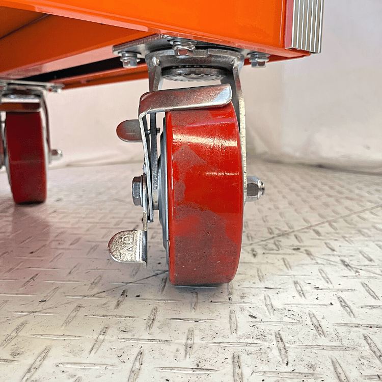 - 5” high casters wheels and 2” wide (2 fixed, 2 locking swivel) provide easy mobility when fully loaded