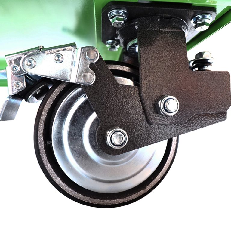 - 5” high and 2” wide caster wheels (2 fixed, 4 locking swivel) provide easy mobility when fully loaded