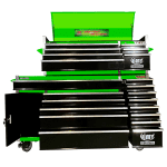 - 21 drawers for easy organisation of hand tools and everything else you need. The bottom left-hand cabinet is an extra large compartment for storage on bulky and heavy items such as larger power tools etc. Drawers are easily removable.