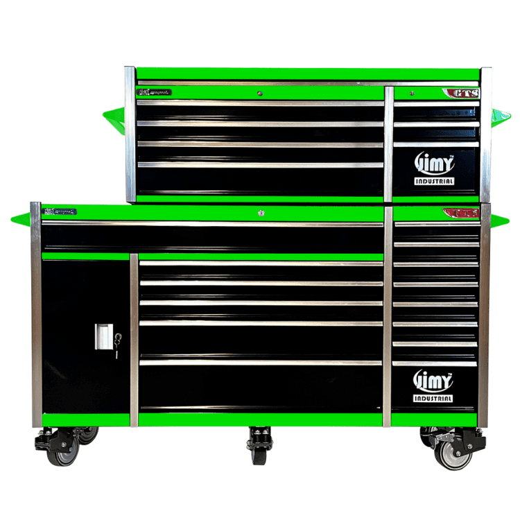 Jimy tool boxes are career spanning and built to last! Jimy tool boxes are fully modular to offer a number of storage combinations to fit your needs. With the extra deep 500mm drawers our 72” roller cabinet & 56” top chest expands your storage capabilities and has a massive 2360kgs in weight load capacity. It features 21 drawers with full-width drawer handles, pre-cut drawer liners and a single integrated barrel lock. Durable full extension ball bearings and a tough power coated finish make this storage a perfect fit for your home garage or commercial workshop.