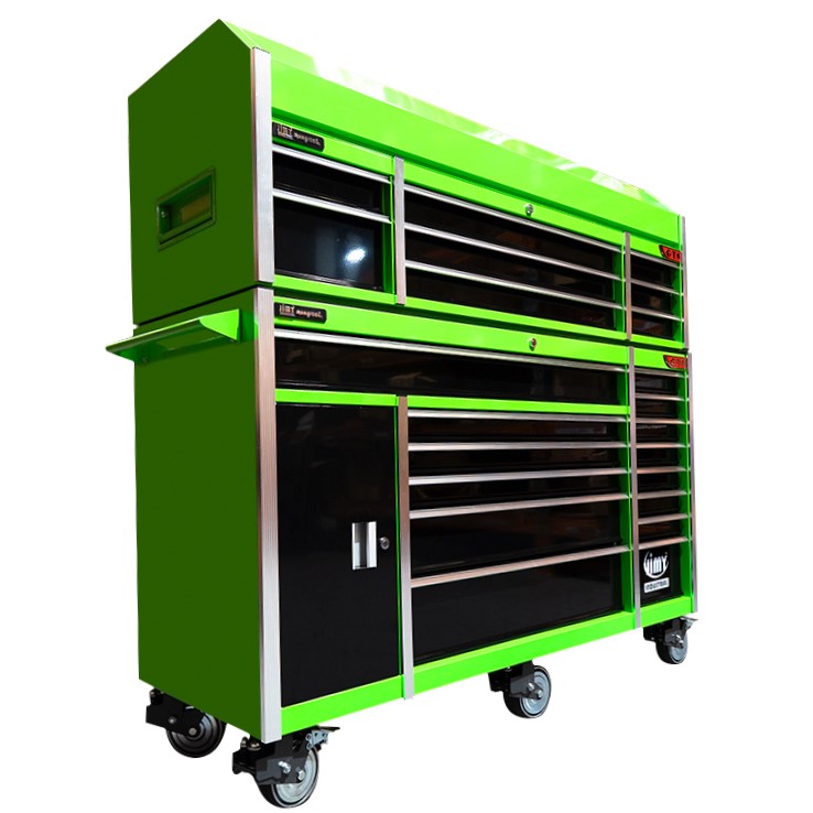 Jimy tool boxes are career spanning and built to last! Jimy tool boxes are fully modular to offer a number of storage combinations to fit your needs. With the extra deep 500mm drawers our 72” workshop expands your storage capabilities and a massive 2520kgs in weight load capacity. It features 22 drawers with full-width drawer handles, pre-cut drawer liners and a single integrated barrel lock. Durable full extension ball bearings and a tough power coated finish make this storage a perfect fit for your home garage or commercial workshop.
