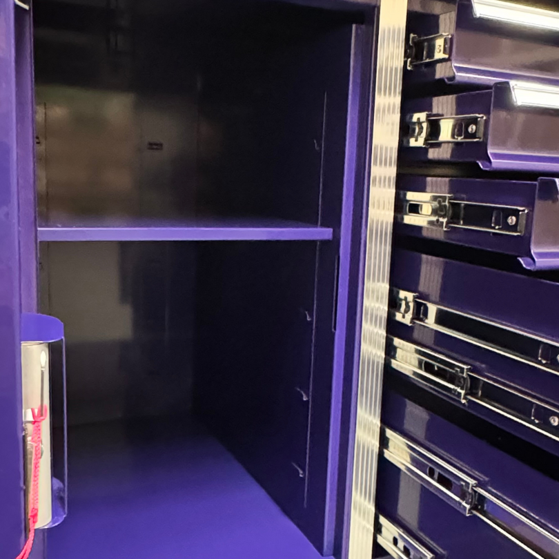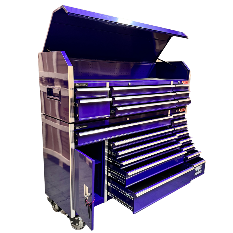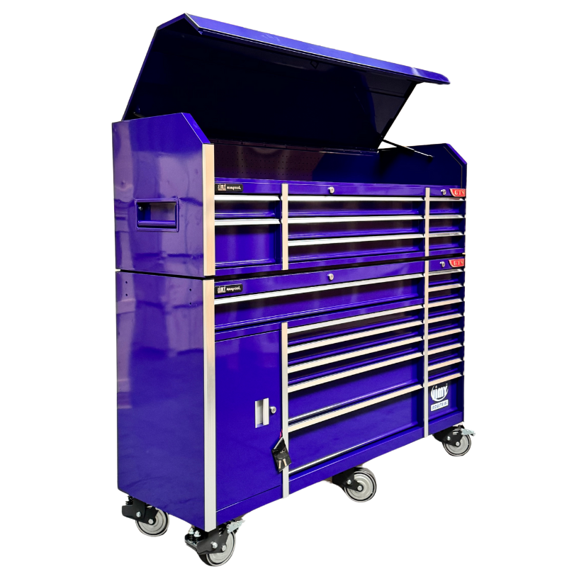 - 22 drawers for easy organisation of hand tools and everything else you need. The bottom left-hand cabinet is an extra large compartment for storage on bulky and heavy items such as larger power tools etc. Drawers are easily removable.