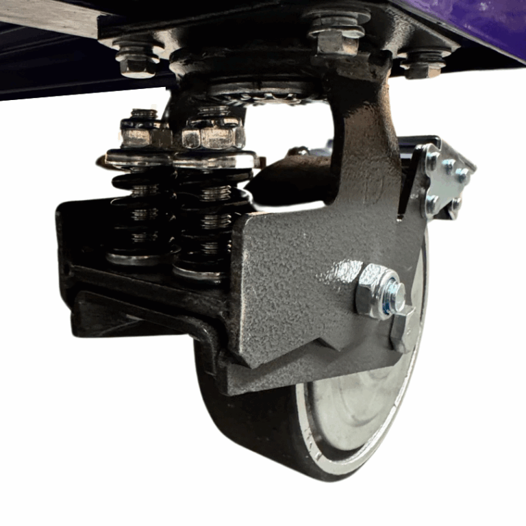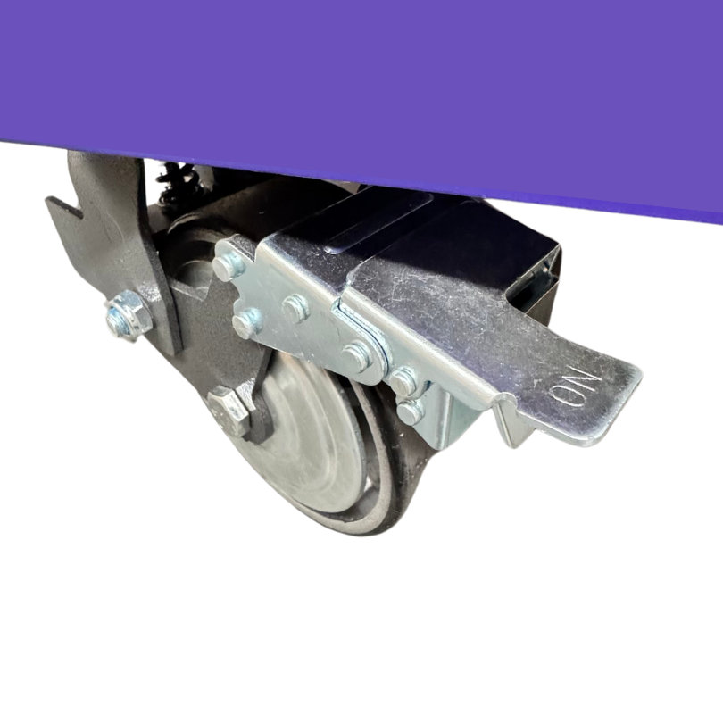 - 5” high and 2” wide caster wheels (2 fixed, 4 locking swivel) provide easy mobility when fully loaded
