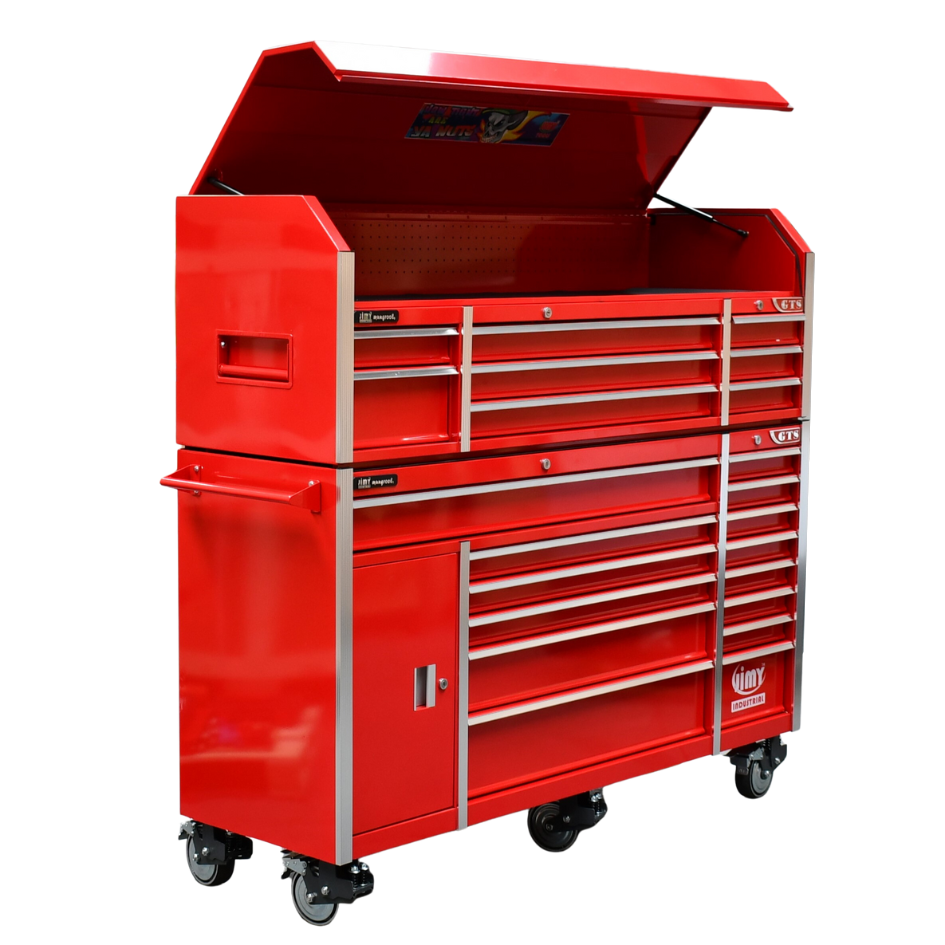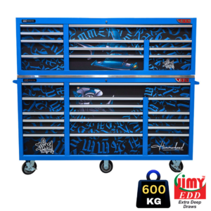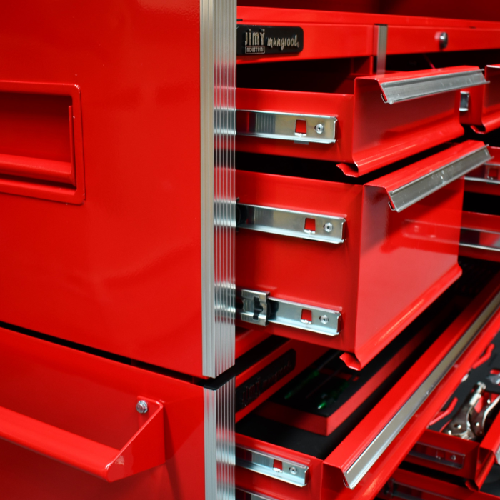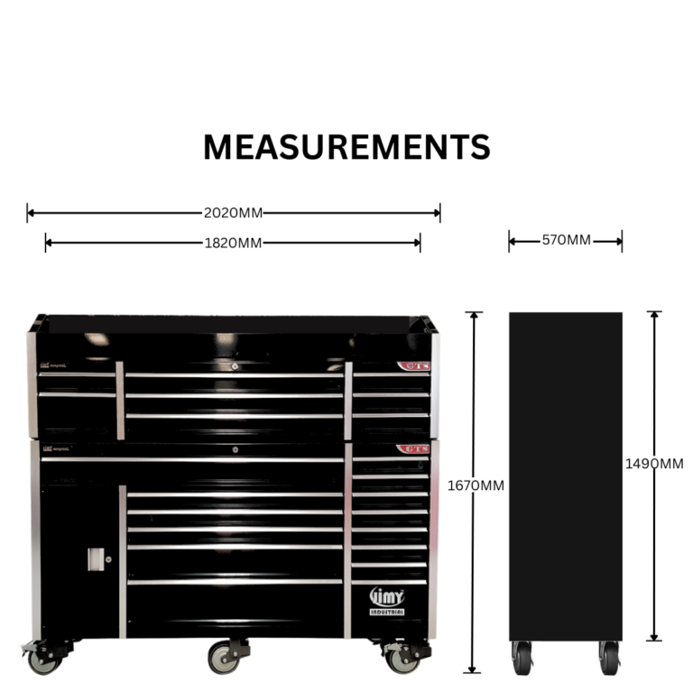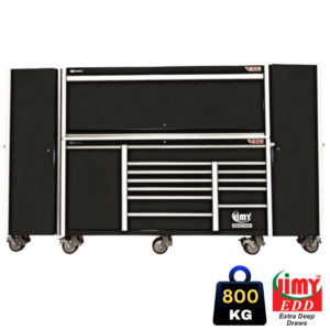 Jimy tool boxes are career spanning and built to last! Jimy tool boxes are fully modular to offer a number of storage combinations to fit your needs. With the extra deep 500mm drawers our 72” workshop expands your storage capabilities and a massive 2520kgs in weight load capacity. It features 22 drawers with full-width drawer handles, pre-cut drawer liners and a single integrated barrel lock. Durable full extension ball bearings and a tough power coated finish make this storage a perfect fit for your home garage or commercial workshop.