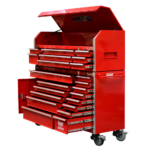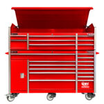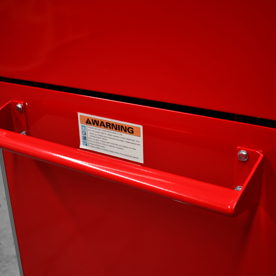 - 22 drawers for easy organisation of hand tools and everything else you need. The bottom left-hand cabinet is an extra large compartment for storage on bulky and heavy items such as larger power tools etc. Drawers are easily removable.