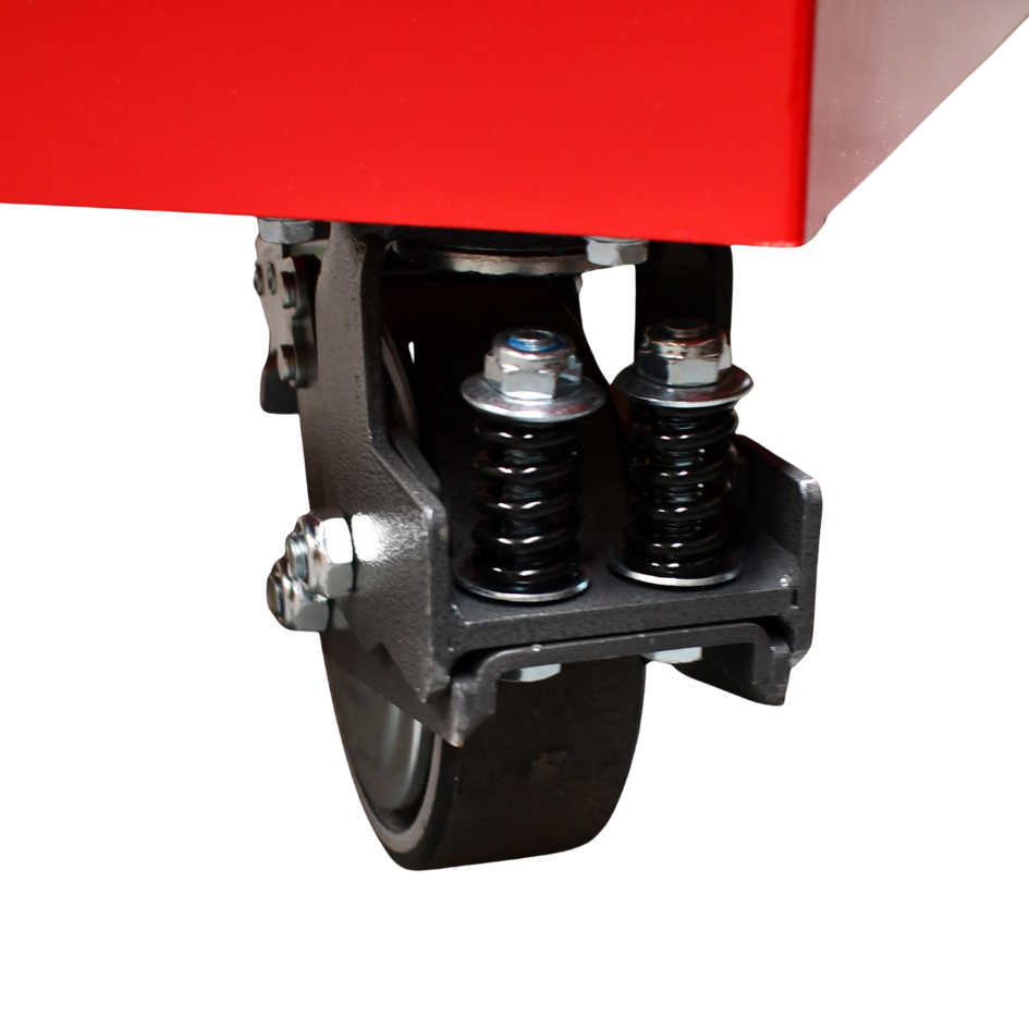 - 5” high and 2” wide caster wheels (2 fixed, 4 locking swivel) provide easy mobility when fully loaded