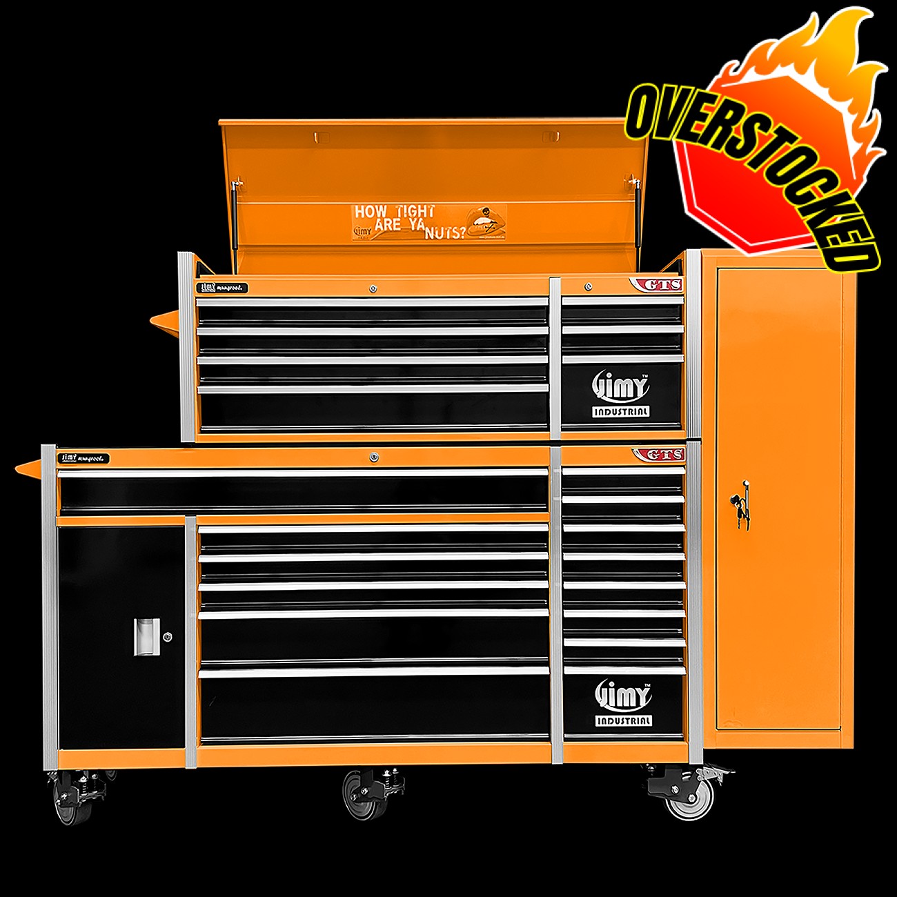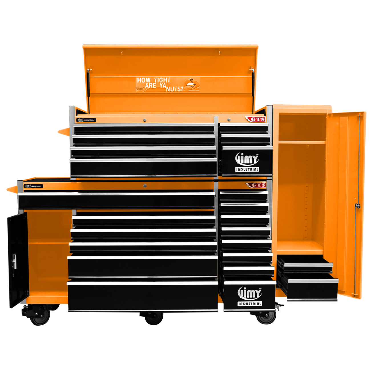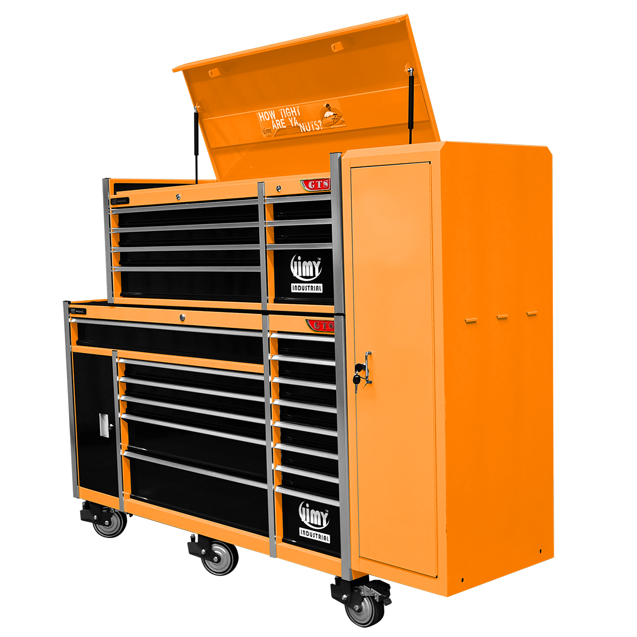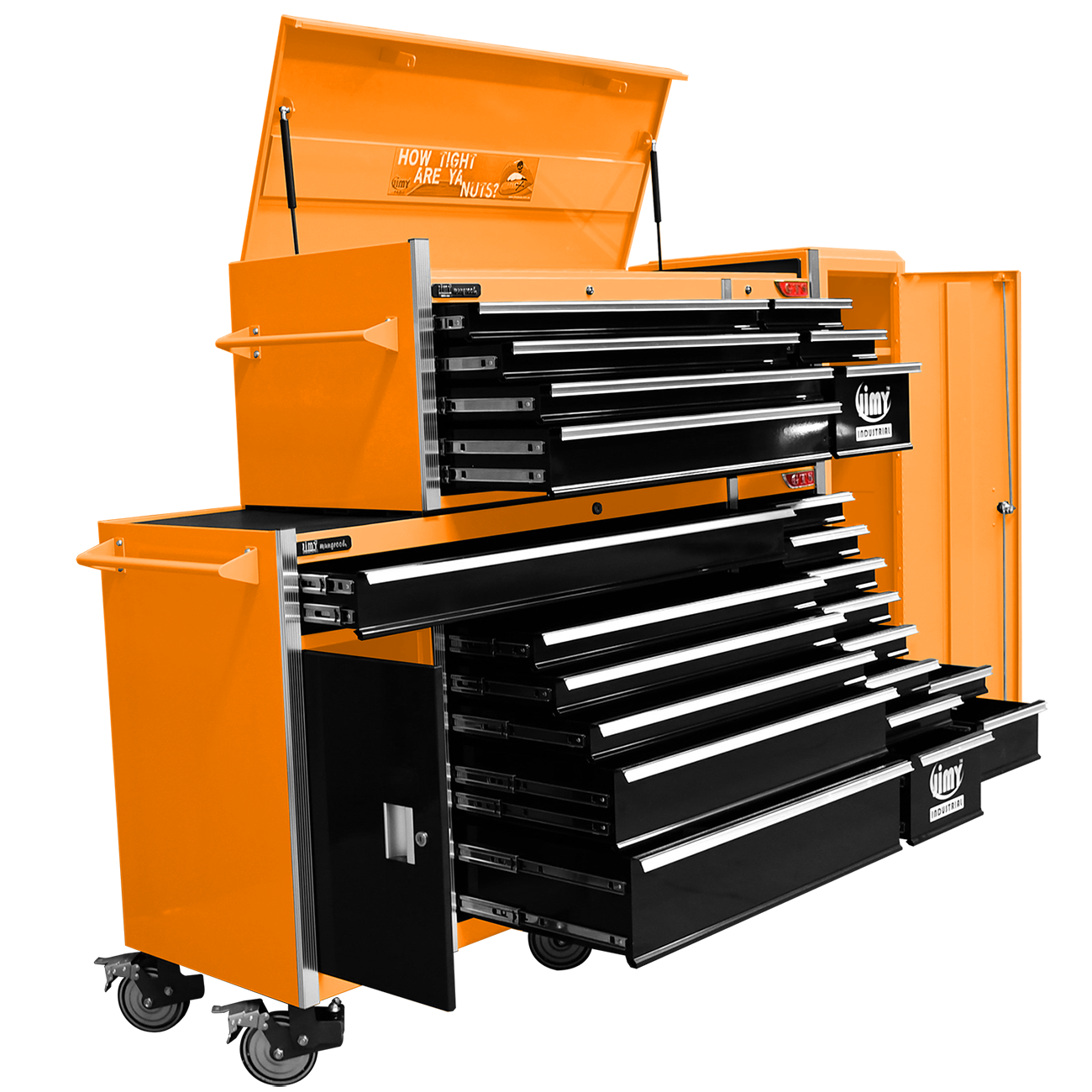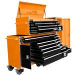 Jimy tool boxes are career spanning and built to last! Jimy tool boxes are fully modular to offer a number of storage combinations to fit your needs. With the extra deep 500mm drawers our 72” roller cabinet, 56” top chest & 16” side locker expands your storage capabilities and has a massive 2780kgs in weight load capacity. It features 23 drawers with full-width drawer handles, pre-cut drawer liners and a single integrated barrel lock. Durable full extension ball bearings and a tough power coated finish make this storage a perfect fit for your home garage or commercial workshop.
