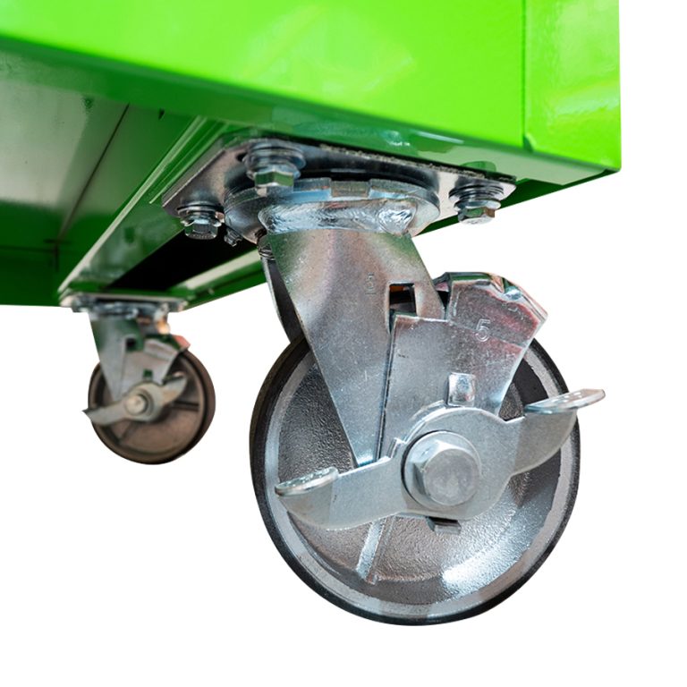 - 5” high casters wheels and 2” wide (2 fixed, 2 locking swivel) provide easy mobility when fully loaded