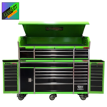 - 36 drawers for easy organisation of hand tools and everything else you need. The bottom left-hand cabinet is an extra large compartment for storage on bulky and heavy items such as larger power tools etc. Drawers are easily removable.