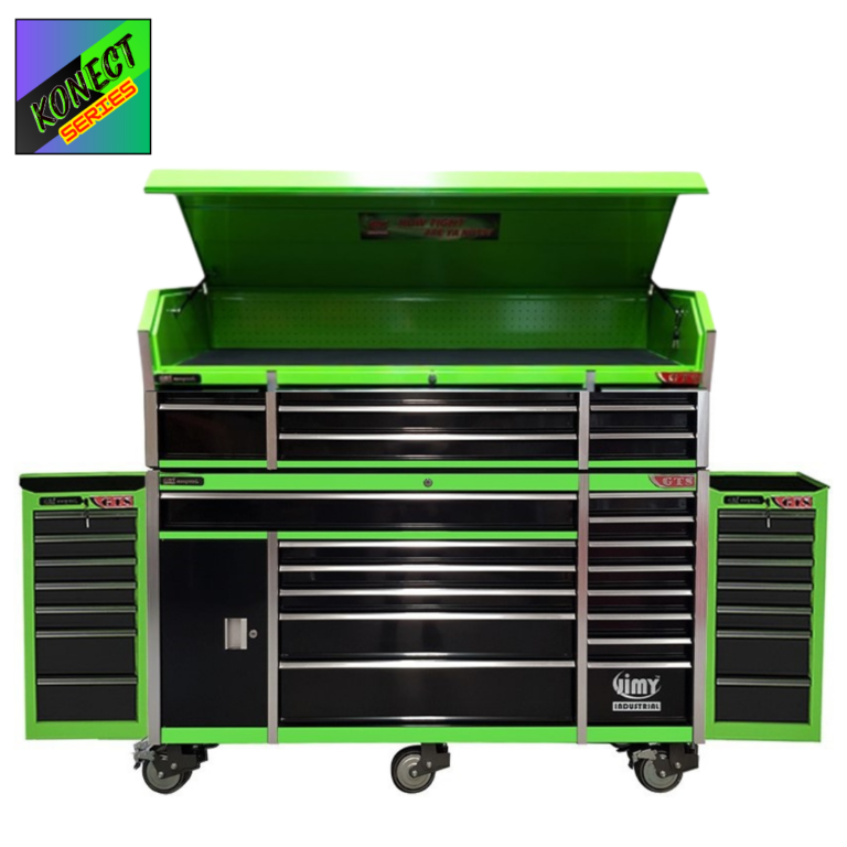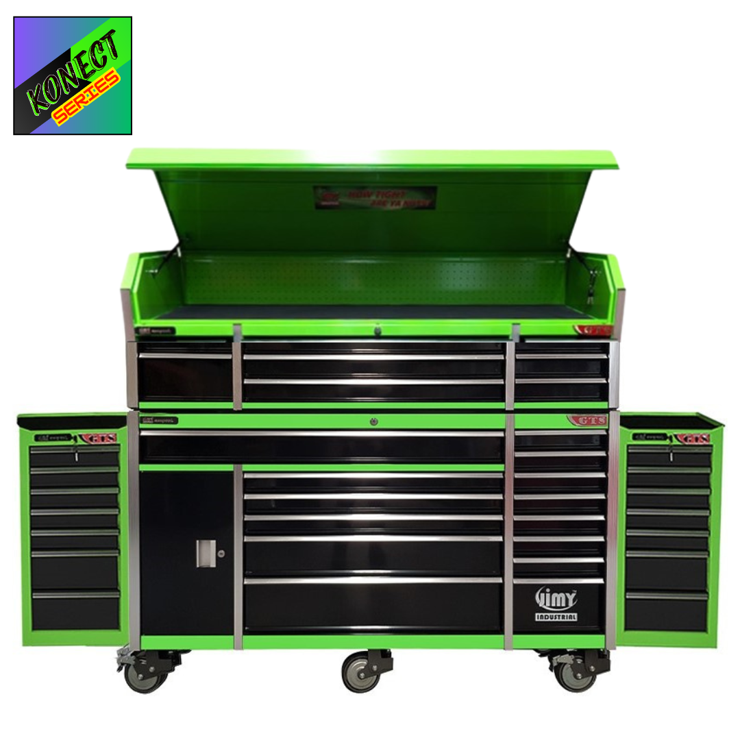 Jimy tool boxes are career spanning and built to last! Jimy tool boxes are fully modular to offer a number of storage combinations to fit your needs. With the extra deep 500mm drawers our 72” mammoth workshop expands your storage capabilities and a massive 3360kgs in weight load capacity. It features 36 drawers with full-width drawer handles, pre-cut drawer liners and a single integrated barrel lock. Durable full extension ball bearings and a tough power coated finish make this storage a perfect fit for your home garage or commercial workshop.
