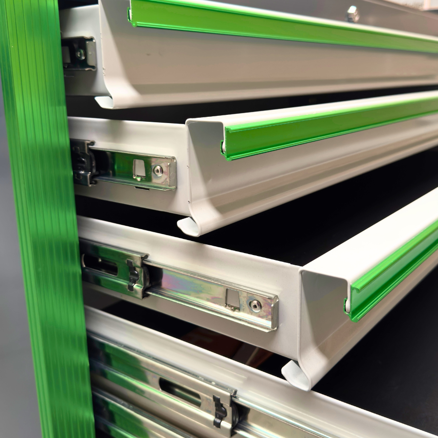 Jimy tool boxes are career spanning and built to last! Jimy tool boxes are fully modular to offer a number of storage combinations to fit your needs. With the extra deep 500mm drawers our 56” tool chest expands your storage capabilities and a massive 680kgs in weight load capacity. It features 7 drawers with full-width drawer handles, pre-cut drawer liners and a single integrated barrel lock. Durable full extension ball bearings and a tough power coated finish make this storage a perfect fit for your home garage or commercial workshop.