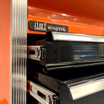 - Integrated single keyhole barrel lock system keeps tools safe and secure.