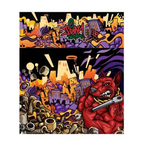 This design uses my signature style with a combination of cartoon and graffiti influences. I wanted the shapes and colours to be bold and bright with heavy linework. Each colour variation uses a variety of contrasting colors to create an interesting and eye-catching design that pops and has an entertaining and lasting visual impact.