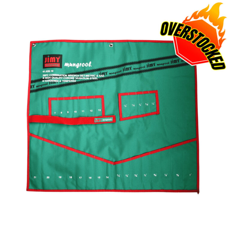 Jimy’s own “Rip Stop” canvas spanner roll with eyelets. 28-piece slotted pouch available for sizes 7mm-21mm and ¼” – 1”.