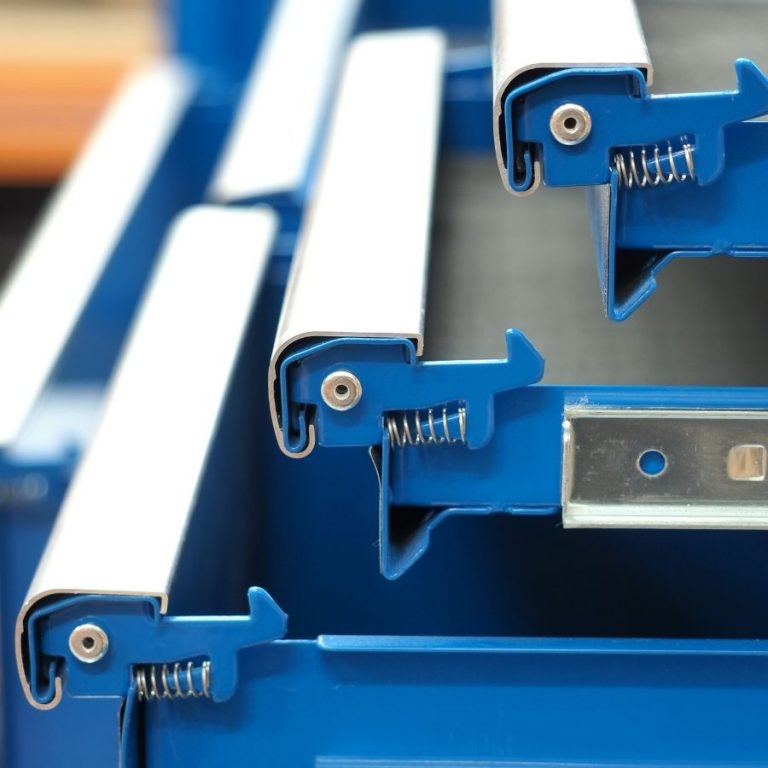 Jimy tool boxes are built to last with a tough industrial powder coating, 1.0mm thick steel, fully lockable with a rear internal locking system, dual gas strut system for lid & ball bearing slide drawers with twin slides on the deeper drawers. The drawers also have a Click-Lock mechanism to ensure drawers don’t push open during the movement of the tool box.