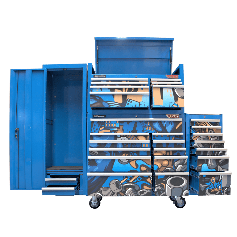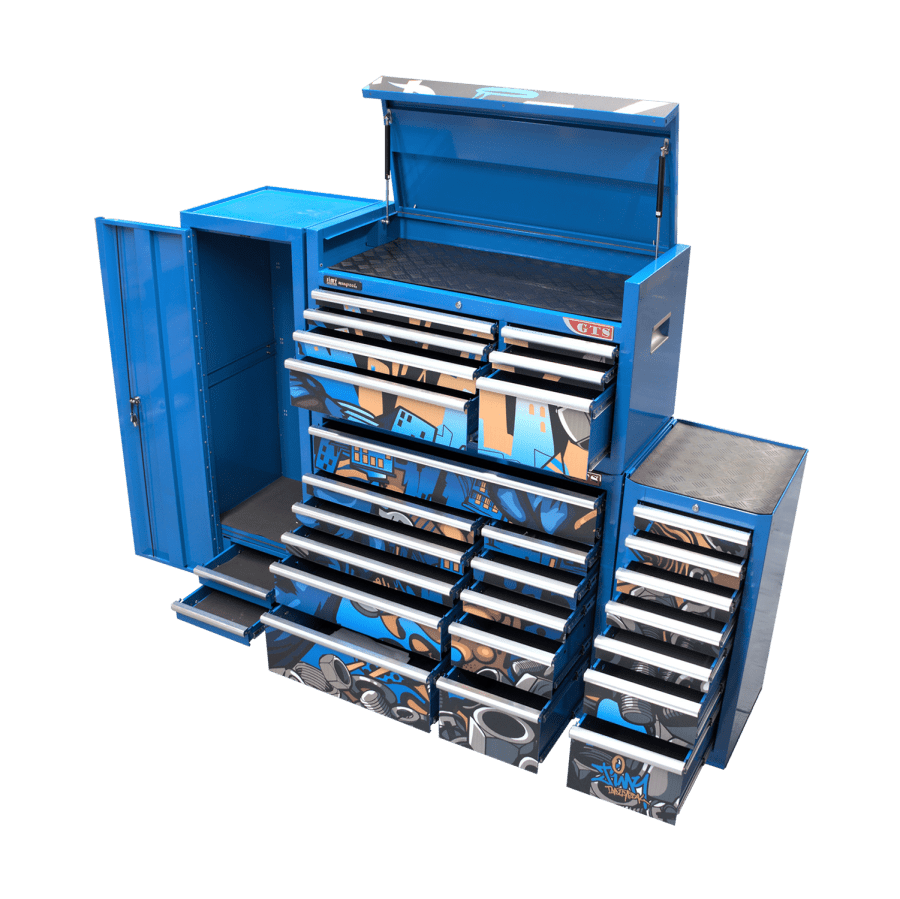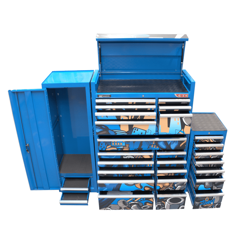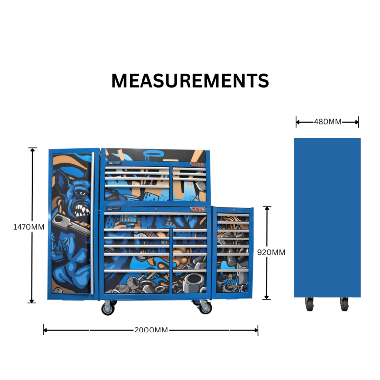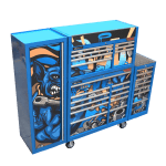 - 27 drawers for easy organisation of hand tools and everything else you need. Drawers are easily removable. Huge side locker for any needed bulky storage.