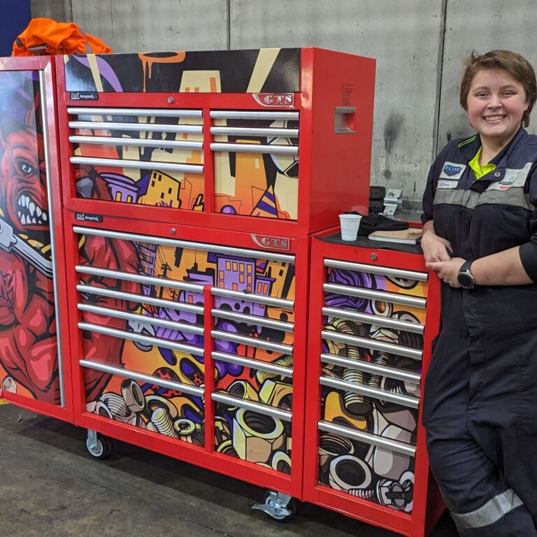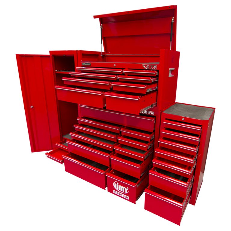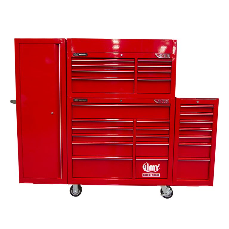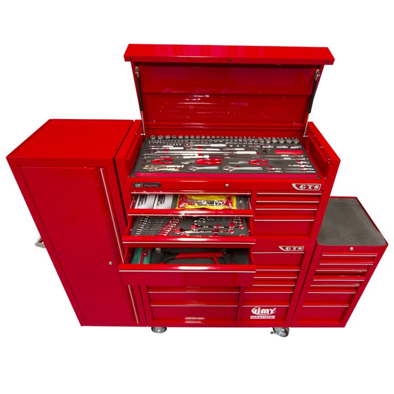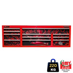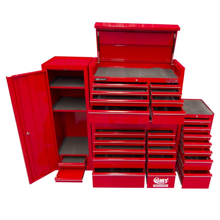 Jimy tool boxes are built to last with a tough industrial powder coating, 1.0mm thick steel, fully lockable with a rear internal locking system, dual gas strut system for lid & ball bearing slide drawers with twin slides on the deeper drawers. The drawers also have a Click-Lock mechanism to ensure drawers don’t push open during the movement of the tool box.