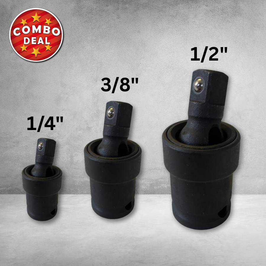 Cover every angle with the Jimy Tools Universal Joint Set. This complete 3-piece kit includes 1/4″, 3/8″, and 1/2″ drive joints, ensuring you have the flexibility to tackle fasteners in confined or hard-to-reach areas across all drive sizes.