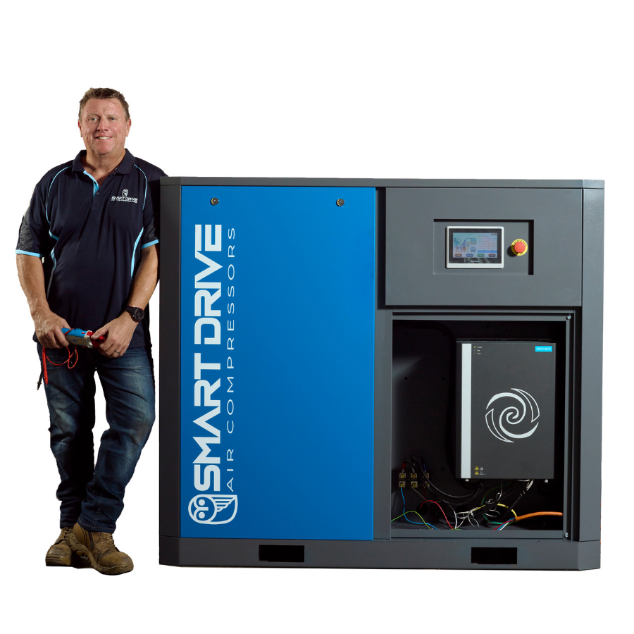 Equipped with a 45kW / 60HP permanent magnet synchronous motor and an Inovance variable speed drive (VSD) with touchscreen control, the SD60VBM delivers 240CFM of free air delivery at 10 bar, adjusting output to match demand for superior energy efficiency.